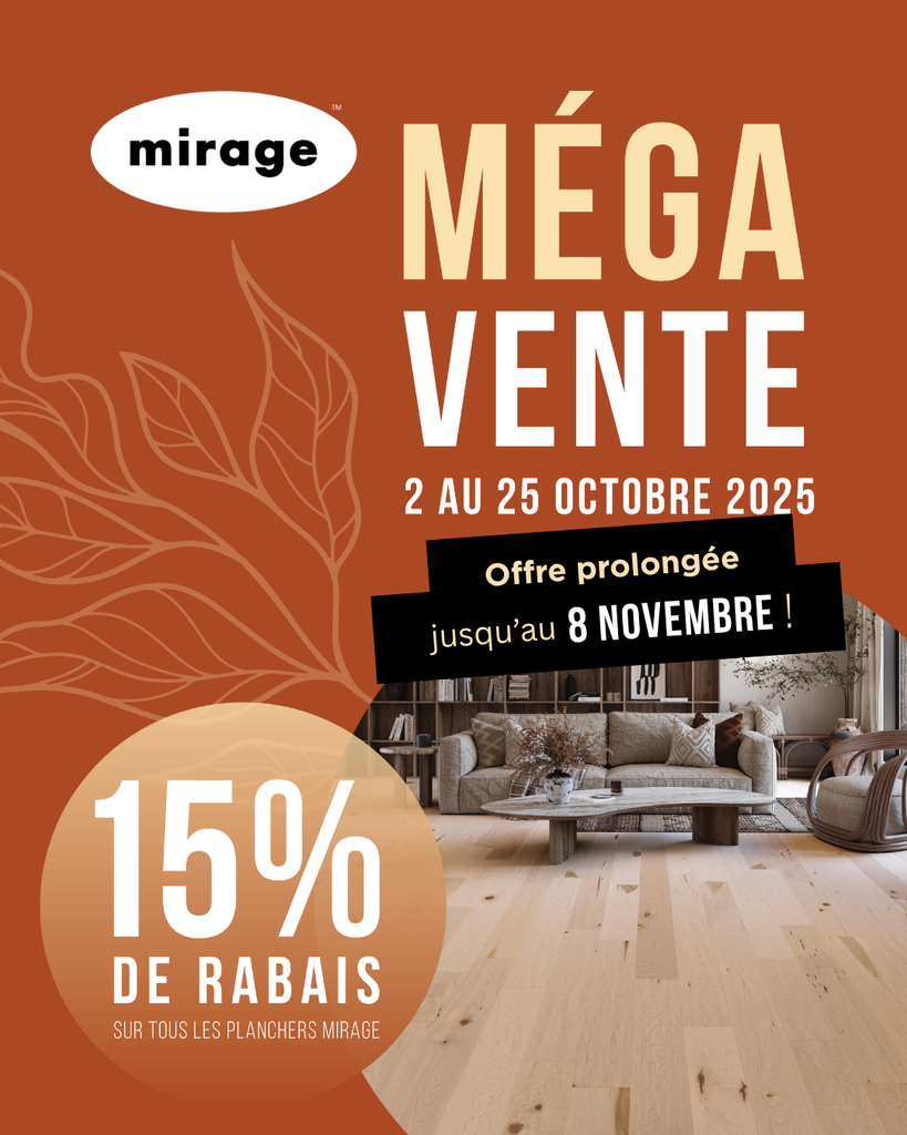 Profitez de 15% de rabais sur tous les planchers Mirage jusqu'au 8 novembre !