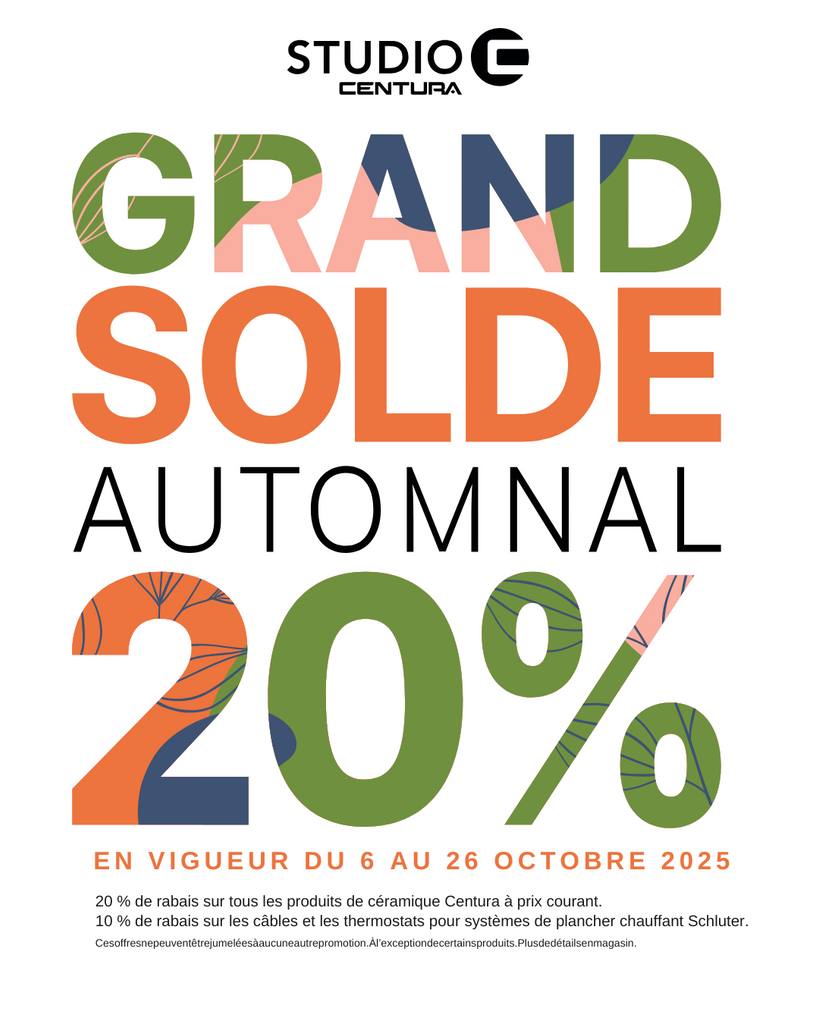 Profitez d'un rabais de 20% sur toutes les céramiques de Centura jusqu'au 26 octobre.
