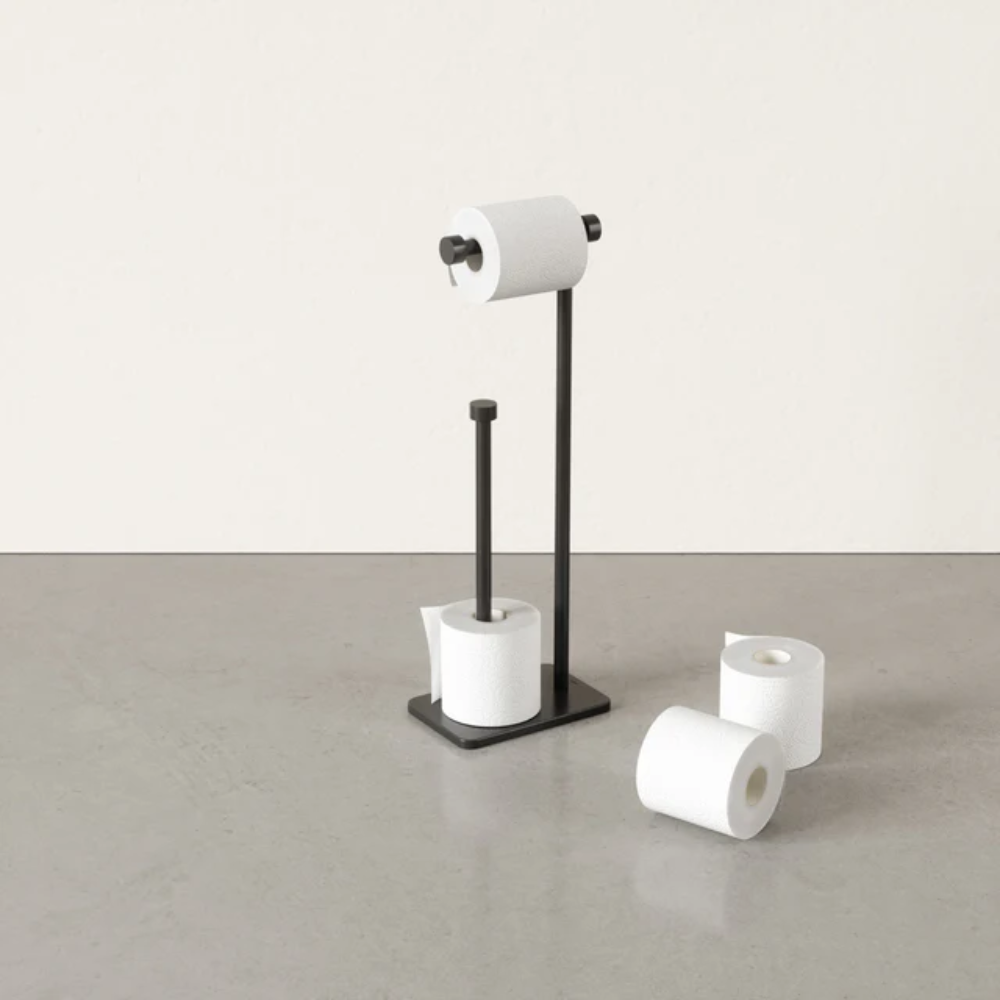 Porte-papier hygiénique autoportant noir avec réserve intégrée au design moderne de Umbra