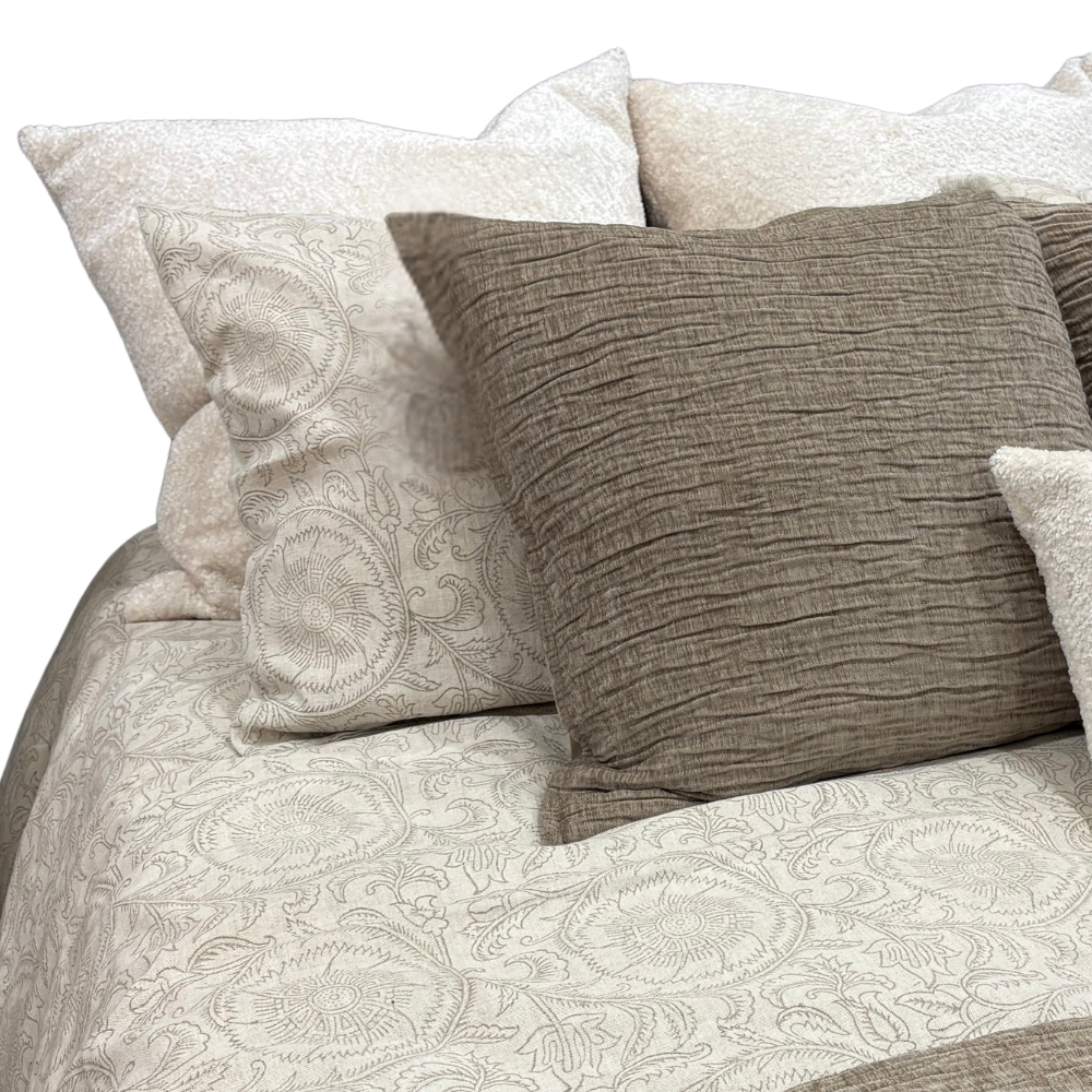 Ensemble de housse de couette Botanique Queen naturel avec motif imprimé à la main par Indaba