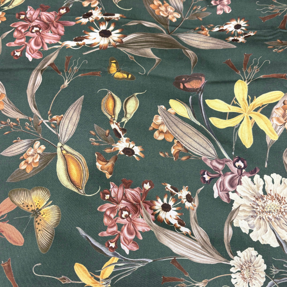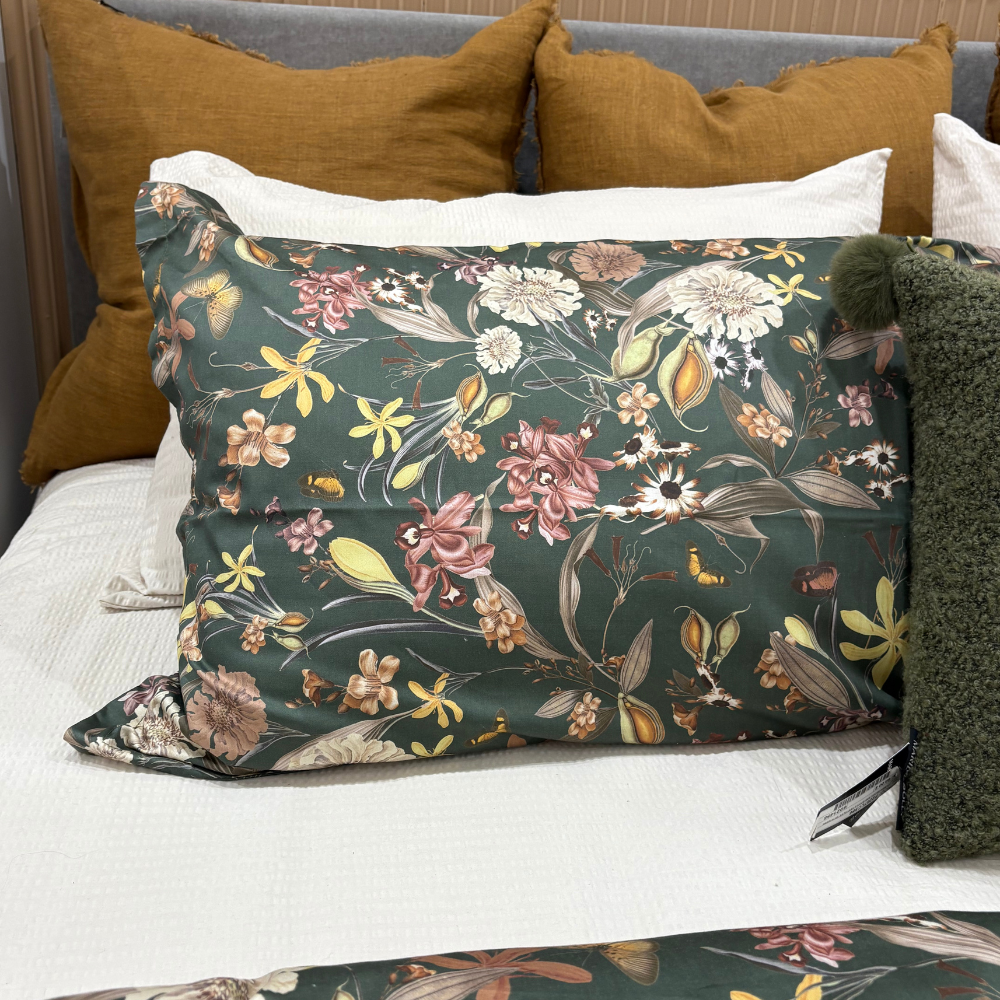 Cache-oreillers en coton satin vert motif floral assortis à la housse de couette Queen Adalia par Cuddledown