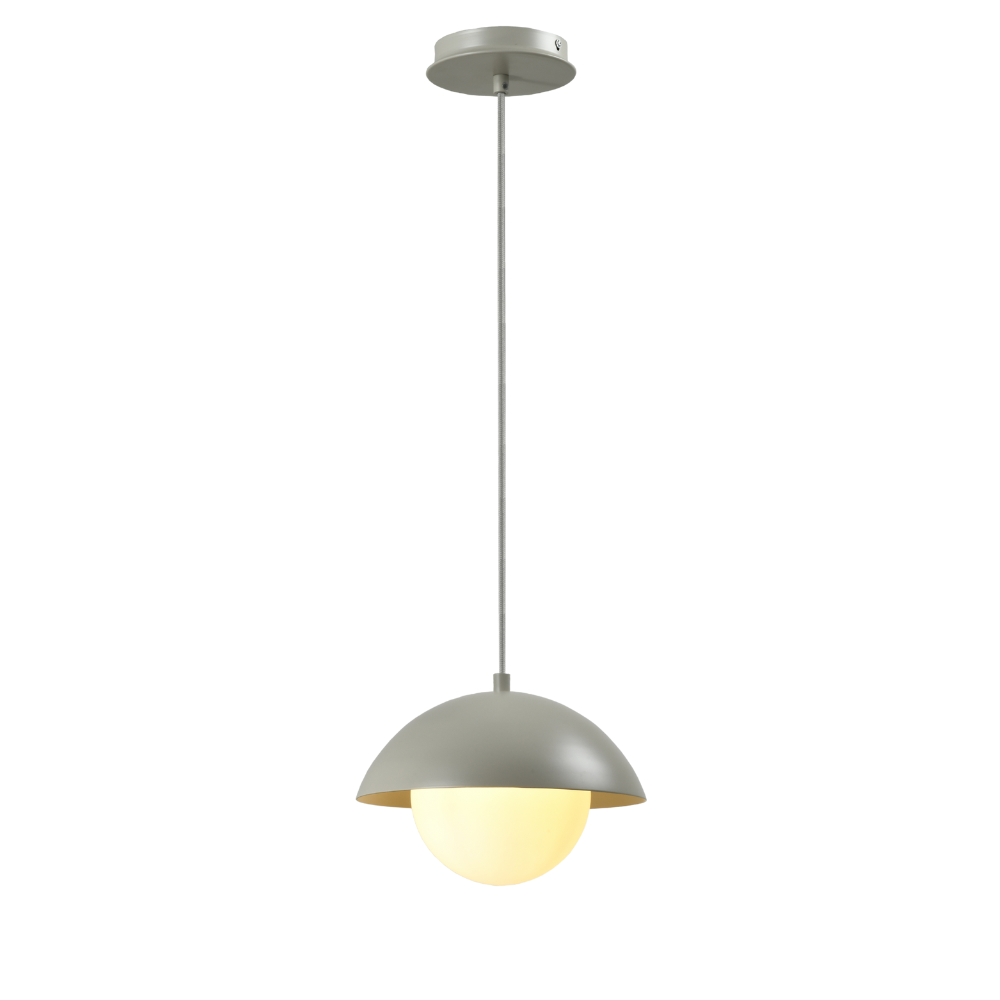 Suspendu simple Ovale greige minimaliste avec globe en verre opalin de IL