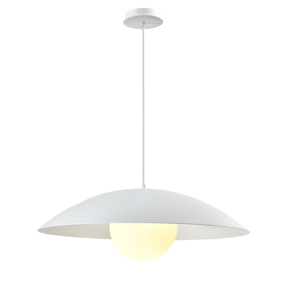 Suspendu simple dôme blanc minimaliste avec globe en verre opalin de IL