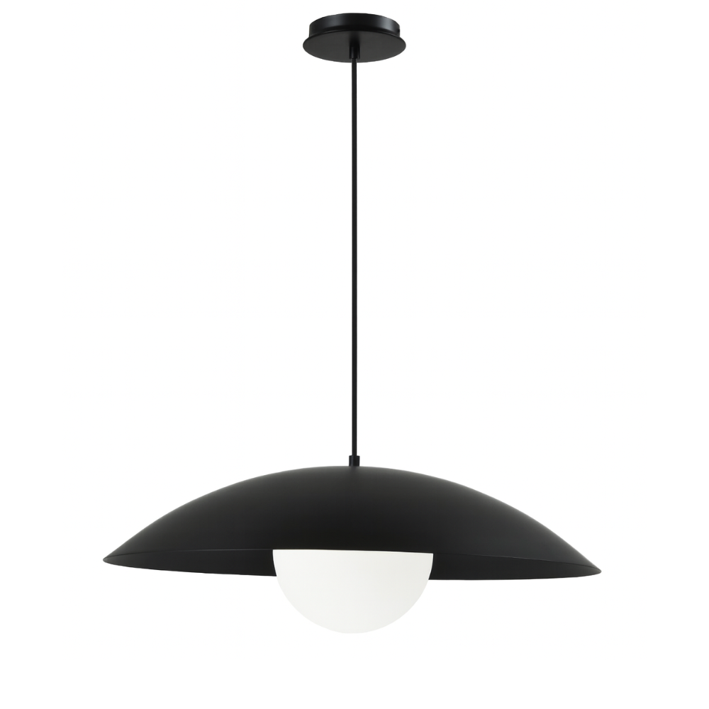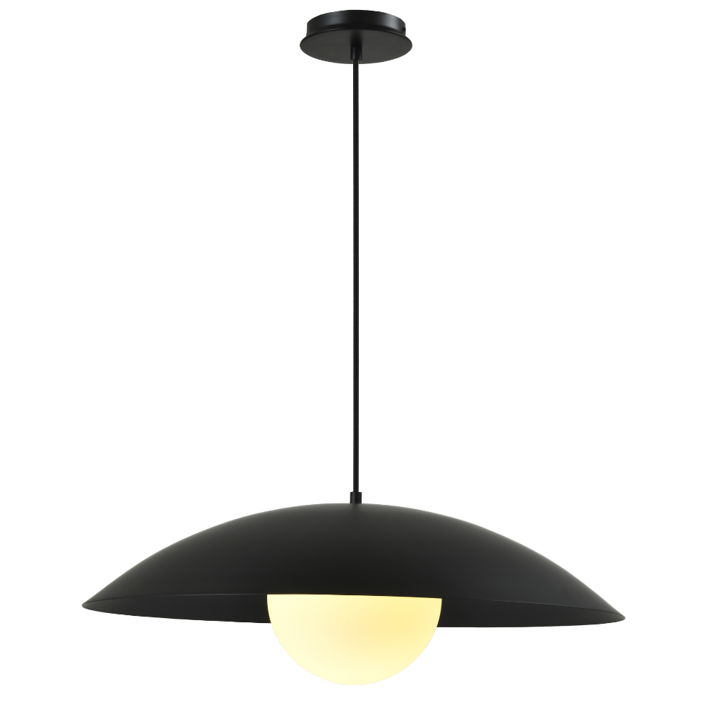 Suspendu simple dôme noir minimaliste avec globe en verre opalin de IL
