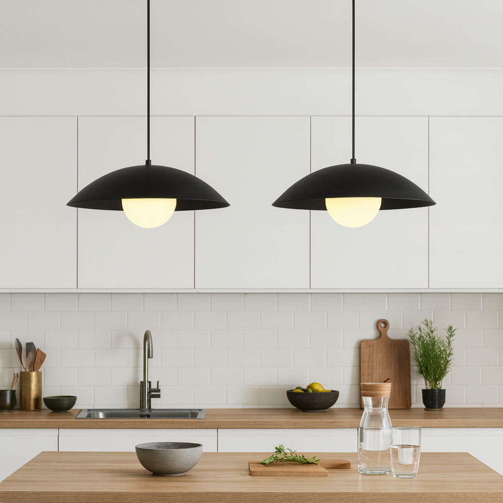 Ce luminaire au design épuré marie la douceur des formes arrondies à une esthétique moderne et minimaliste. Son abat-jour en forme de dôme met en valeur un globe diffusant une lumière douce et uniforme, parfaite pour créer une ambiance chaleureuse dans la salle à manger, la cuisine, le salon ou même une chambre.