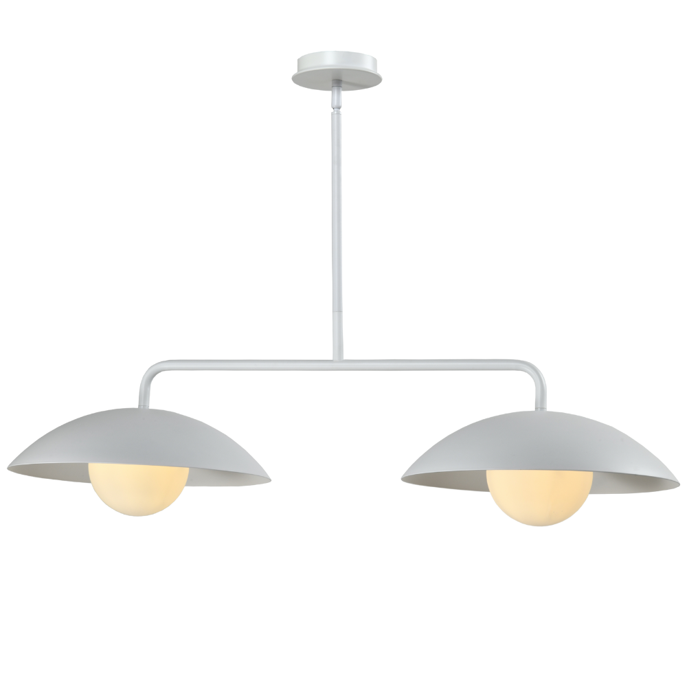 Alliant originalité et élégance, ce luminaire dôme blanc de 38" se distingue par sa silhouette audacieuse composée de deux abat-jours légèrement incurvés qui mettent en valeur les globes givrés, lesquels diffusent une lumière douce et enveloppante. Sa forme sculpturale en fait une pièce décorative idéale pour une salle à manger, un îlot, ou même un bureau, apportant une touche contemporaine et raffinée à tout espace.