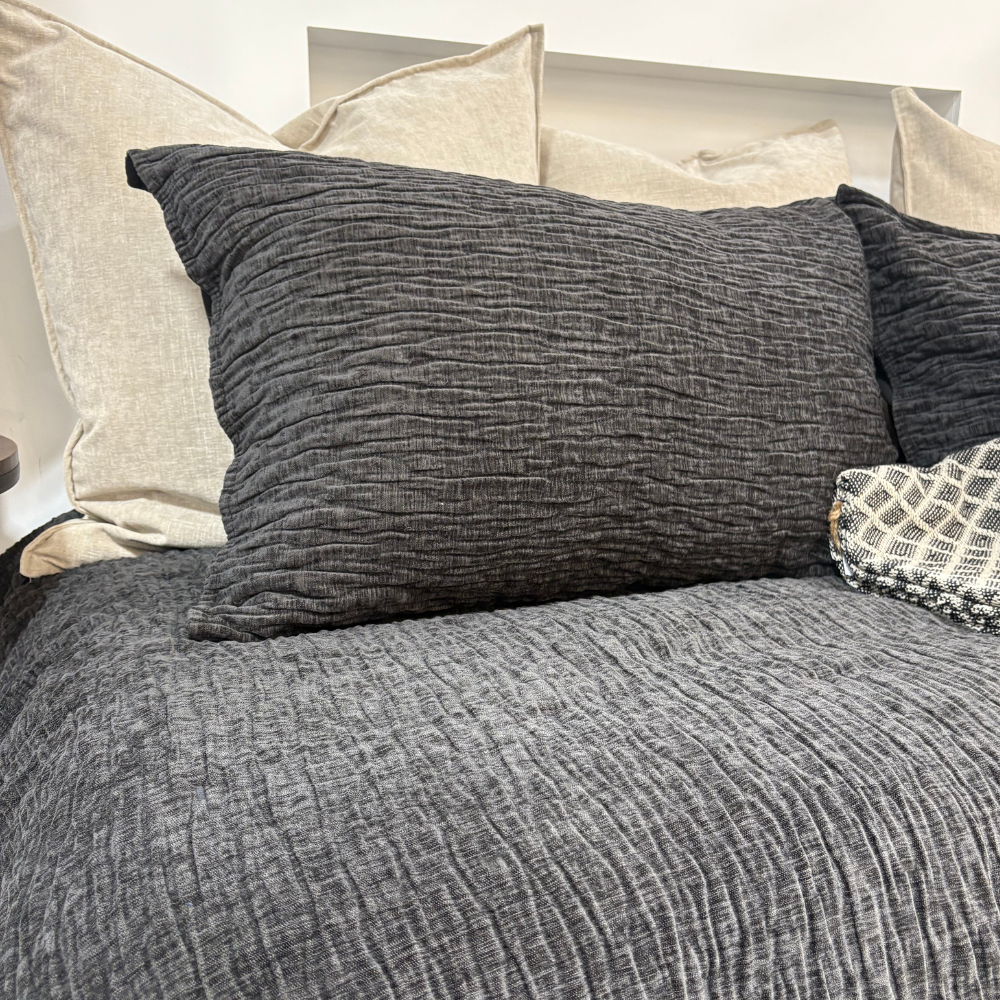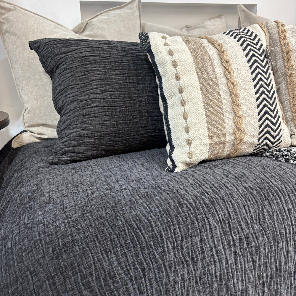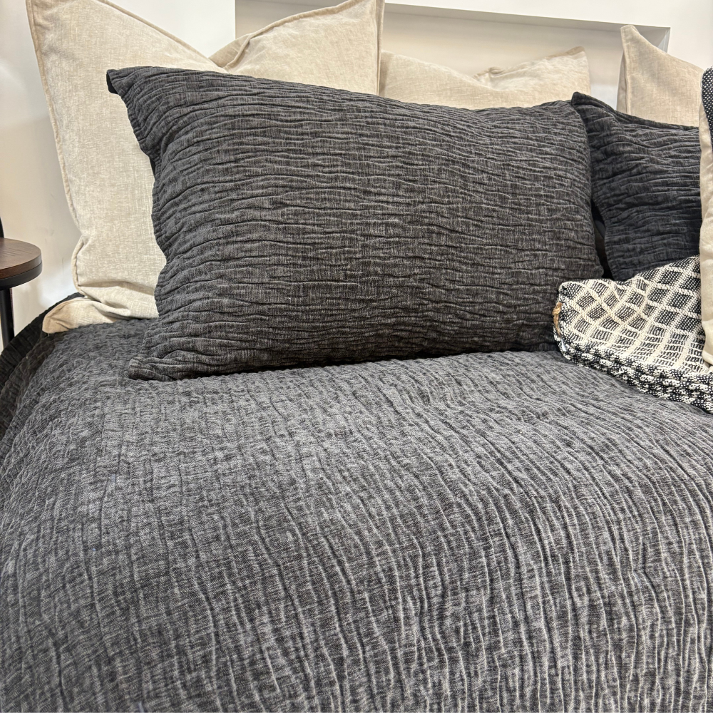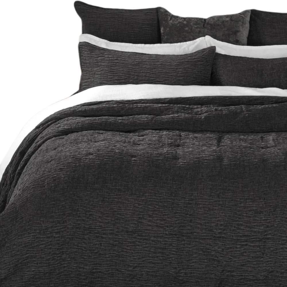 Courtepointe unie en velours texturé gris charcoal pour lit queen de brunelli