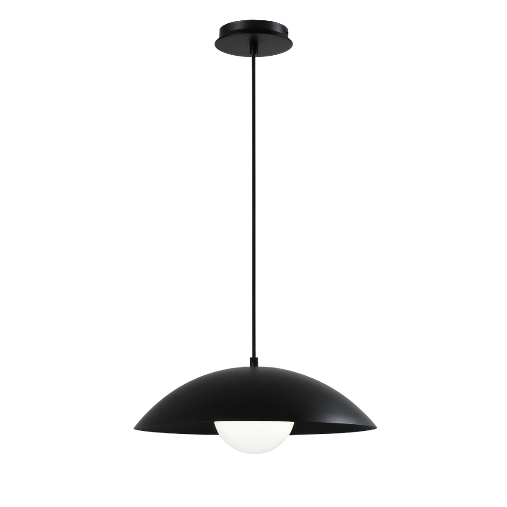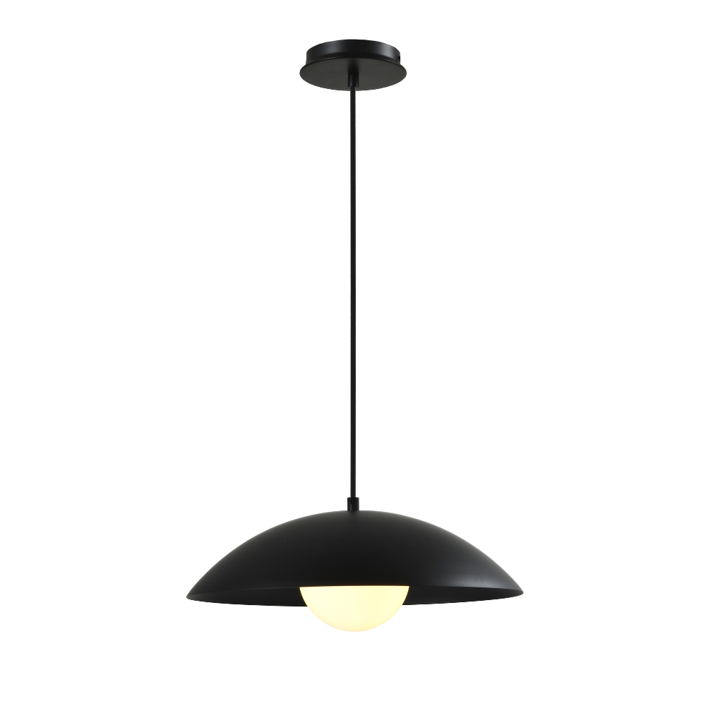 Suspendu simple 15" dôme noir minimaliste avec globe en verre opalin de IL